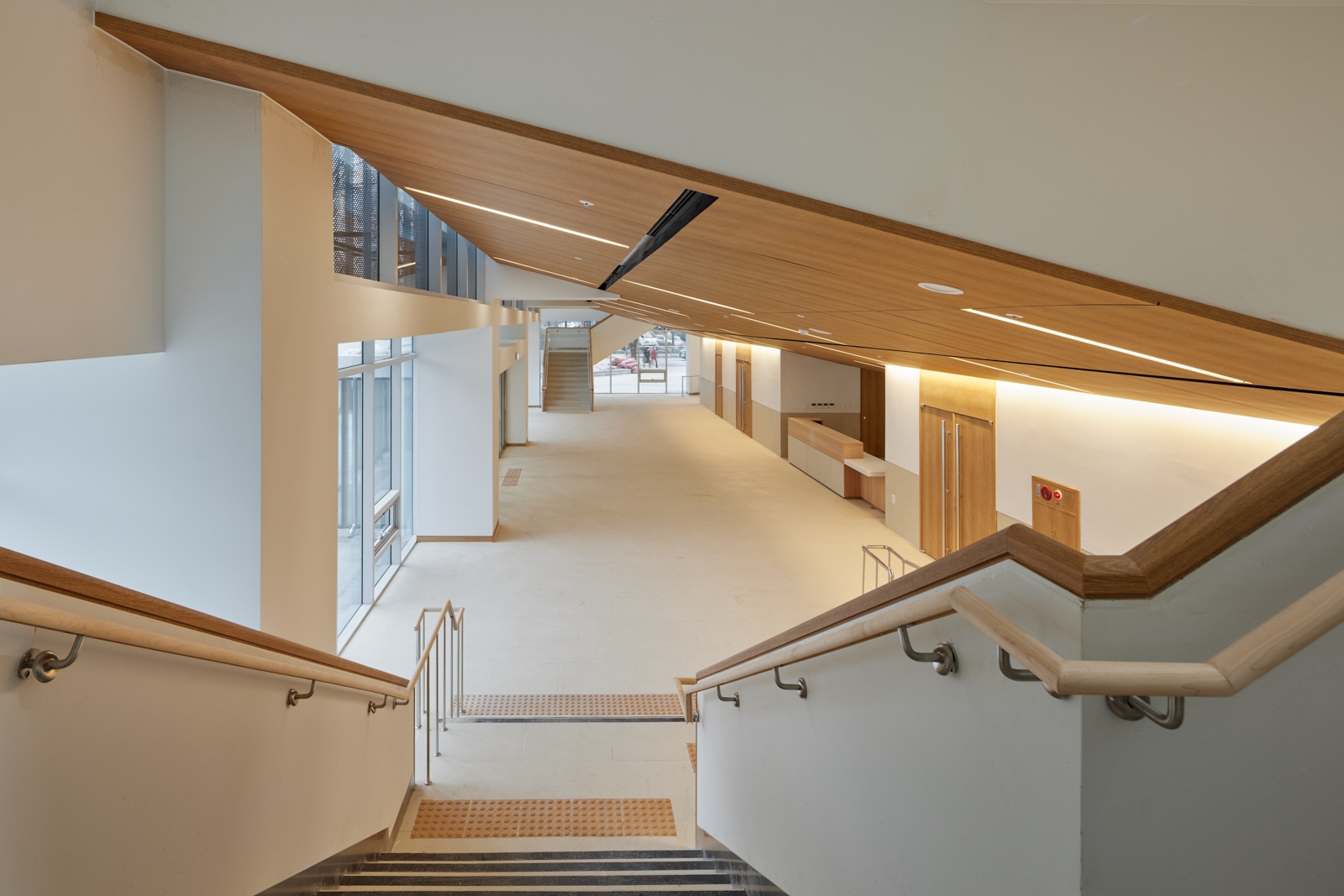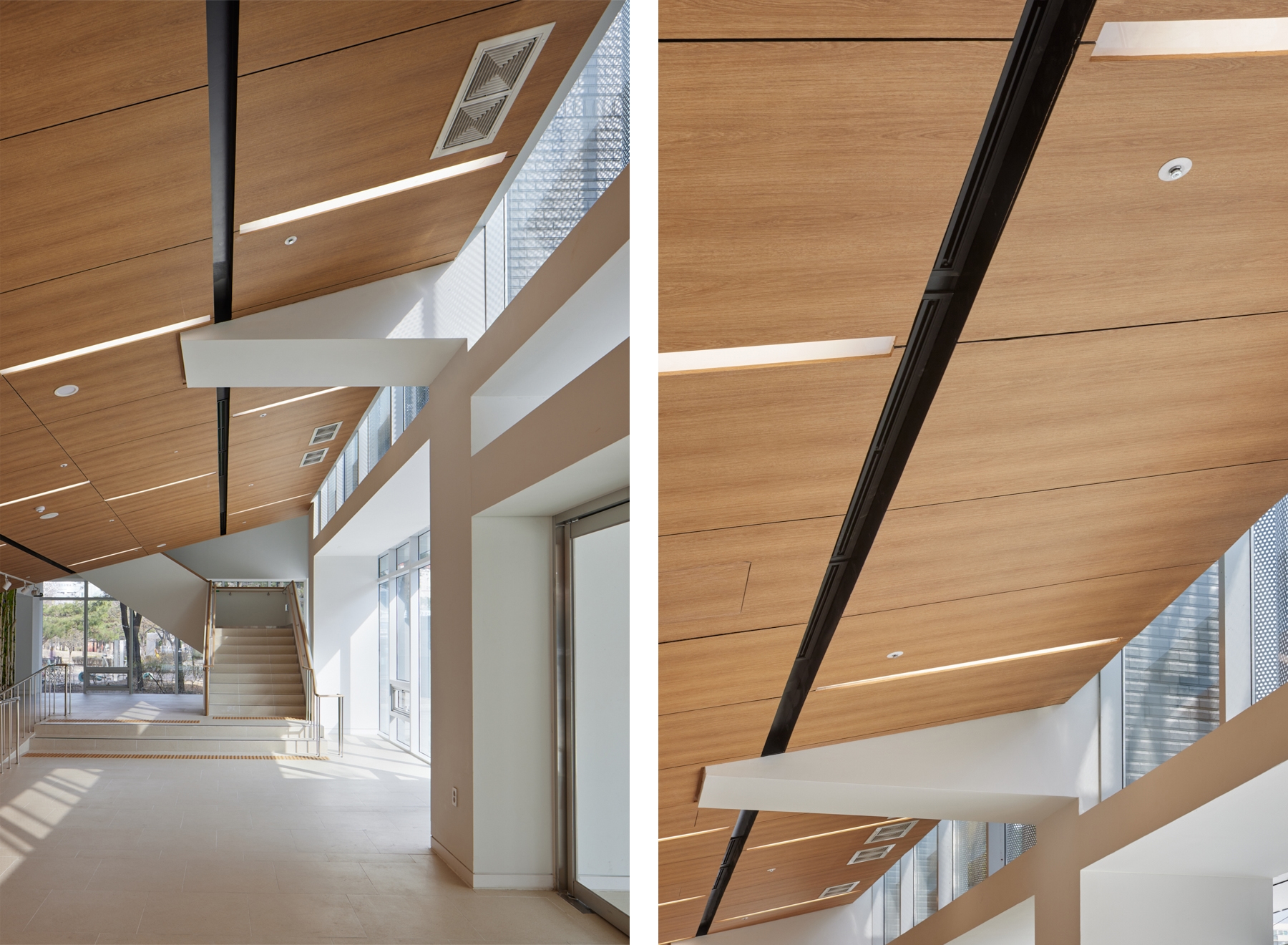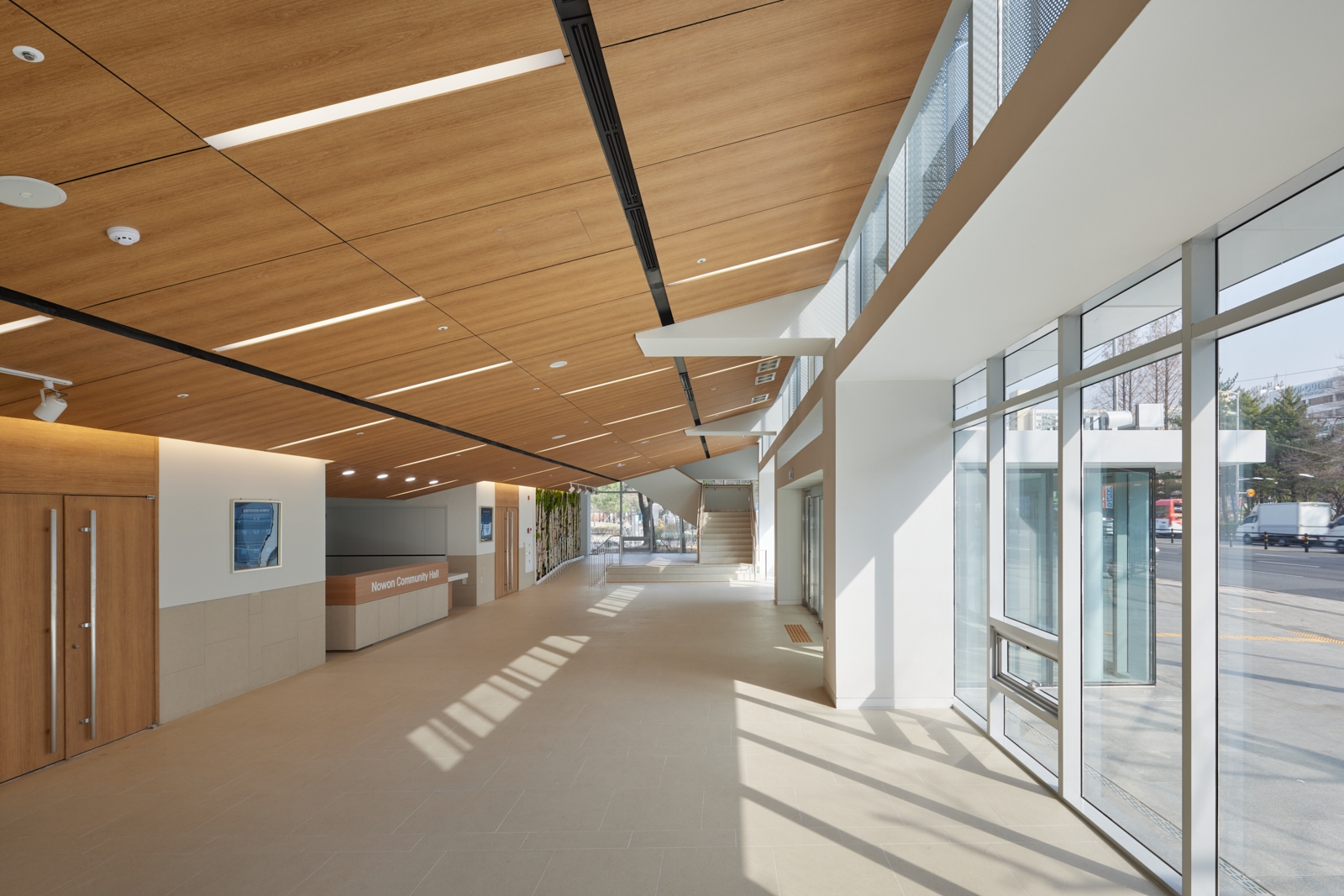 각 층 열람실 중 외피에 면한 영역의 2개층을 오픈하여 건물 주변과 내부를 적극적으로 관계 맺고 동시에 공간의 크기와 채광을 넉넉히 확보하여 쾌적한 열람공간을 제공했다.