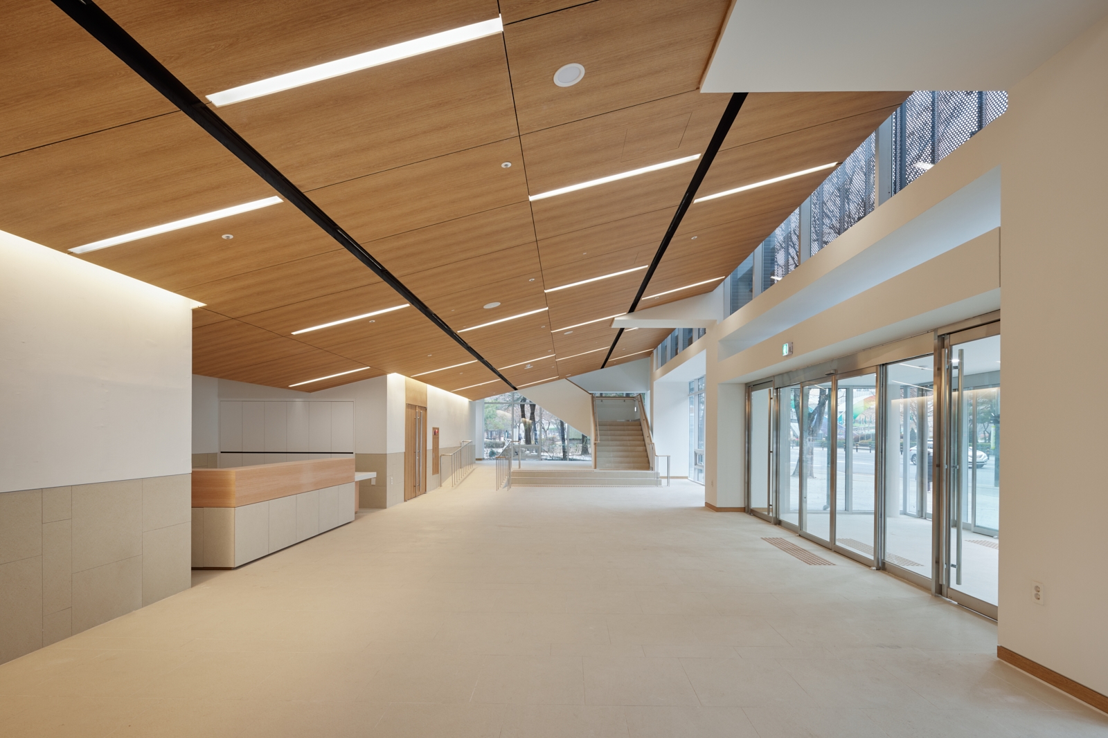 건물의 도로 쪽을 투명하게 열어주어 건물 내로 동선을 유입하고 내부에 중정을 두어